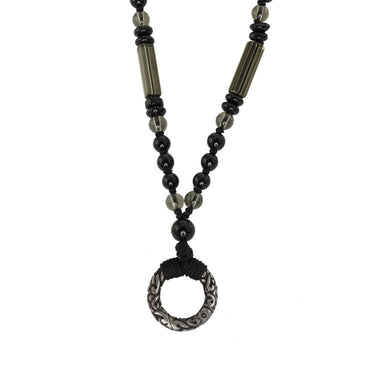 Bead necklace with stainless steel ring