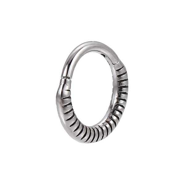 AAB Co Stainless Steel Hinged BCR with Line Design-Black Oil Piercing Jewelry