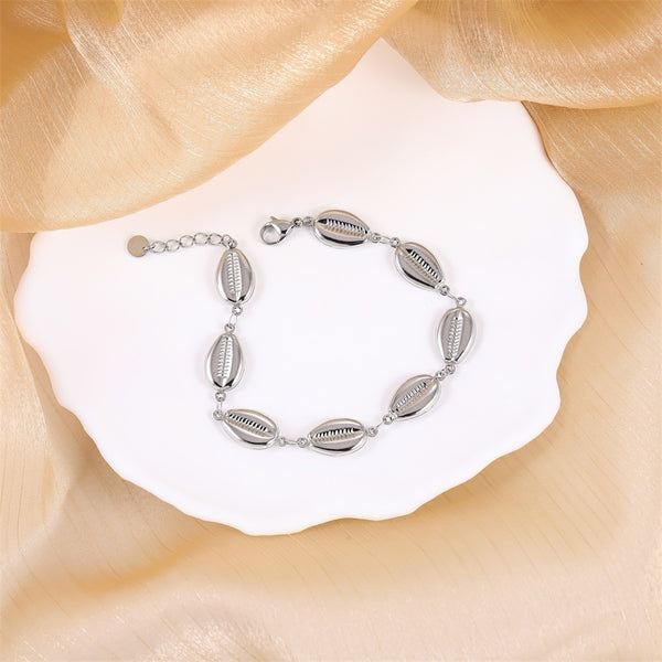 < img height="1" width="1" style="display:none" src="https://www.facebook.com/tr?id=1345682893308291&ev=PageView&noscript=1" /> BSS1146 STAINLESS STEEL COWRIE SHELL BRACELET
