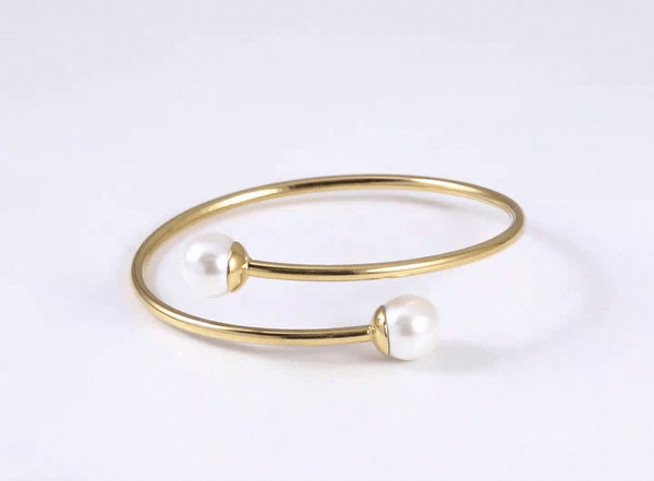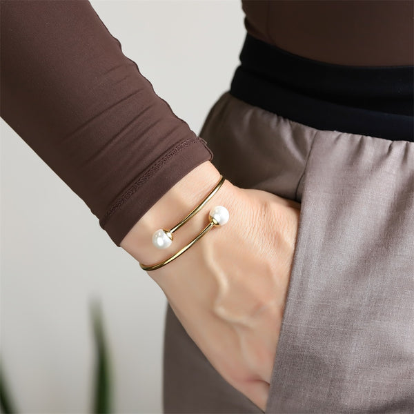 BSSG213 STAINLESS STEEL FLEXIBLE OPEN BANGLE WITH SHELL PEARL BSSG213 STAINLESS STEEL FLEXIBLE OPEN BANGLE WITH SHELL PEARL