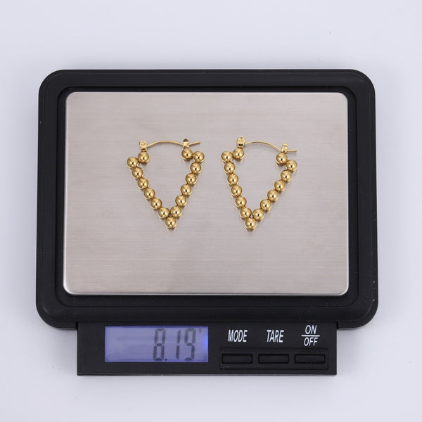 ESS850 STAINLESS STEEL TRIANGLE EARRING WITH 4MM BALLS ESS850 STAINLESS STEEL TRIANGLE EARRING WITH 4MM BALLS