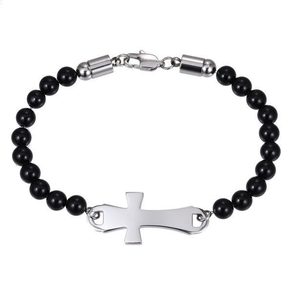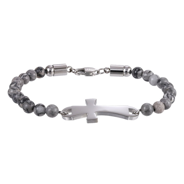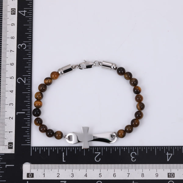 BSS1133 STAINLESS STEEL NATURAL STONE BEADS BRACELET WITH CROSS BSS1133 STAINLESS STEEL NATURAL STONE BEADS BRACELET WITH CROSS