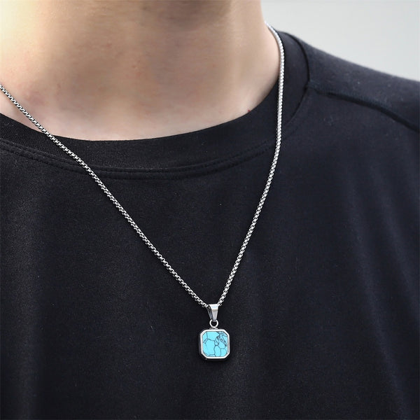 NSS1042 STAINLESS STEEL NECKLACE WITH SYNTHETIC TURQUOISE NSS1042 STAINLESS STEEL NECKLACE WITH SYNTHETIC TURQUOISE