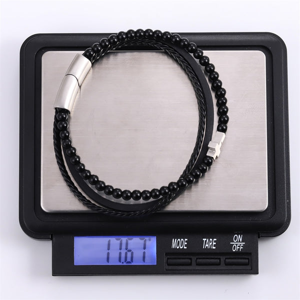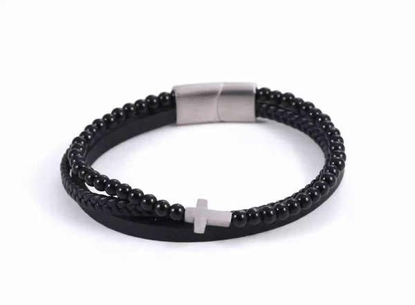 MBSS256 STAINLESS STEEL LEATHER BRACELET WITH CROSS & BEADS MBSS256 STAINLESS STEEL LEATHER BRACELET WITH CROSS & BEADS