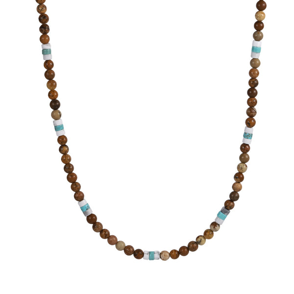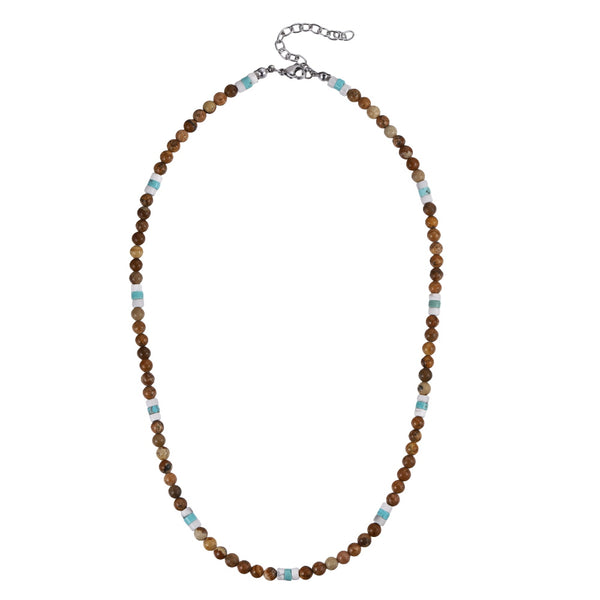 AAB Co. Stainless Steel Beaded Necklace – Picture Stone, White & Blue Turquoise