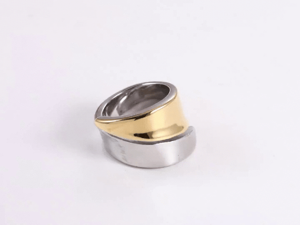 < img height="1" width="1" style="display:none" src="https://www.facebook.com/tr?id=1345682893308291&ev=PageView&noscript=1" /> AAB Two Tone Stainless Steel Ring – Silver Gold & Silver Black Design | OEM ODM Custom Jewelry Manufacturer