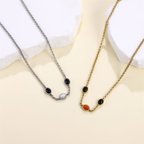 NSS1045 STAINLESS STEEL NECKLACE WITH OVAL STONE NSS1045 STAINLESS STEEL NECKLACE WITH OVAL STONE