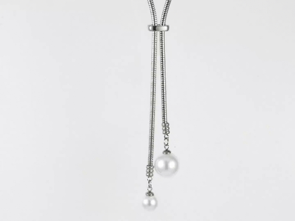 MNSS59 STAINLESS STEEL ROUND SNAKE CHAIN WITH SHELL PEARL MNSS59 STAINLESS STEEL ROUND SNAKE CHAIN WITH SHELL PEARL