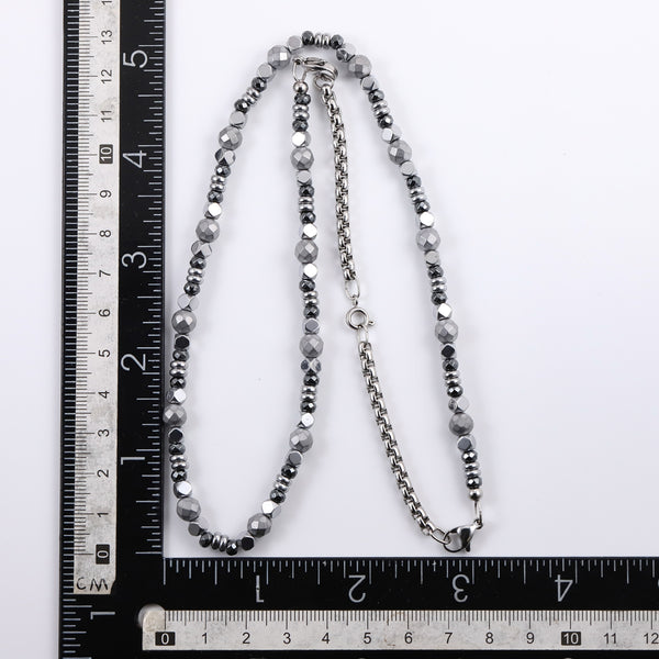 < img height="1" width="1" style="display:none" src="https://www.facebook.com/tr?id=1345682893308291&ev=PageView&noscript=1" /> NSS946 STAINLESS STEEL & HEMATITE BEADS NECKLACE